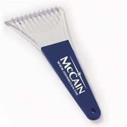“Where the real editorial opportunity lies,” adds Allan Chochinov, co-founder of Core77.com, an industrial design website and blog, “is in the accessories section, and though the easy targets are Clinton’s ironic ‘ruler’ ($3.50; volume pricing available) and McCain’s more oblique ‘ice scraper’ ($10.00), it’s Obama’s ‘hope bracelet’ that is sure to move the merchandise — 4 bucks each and available in both black and white.”